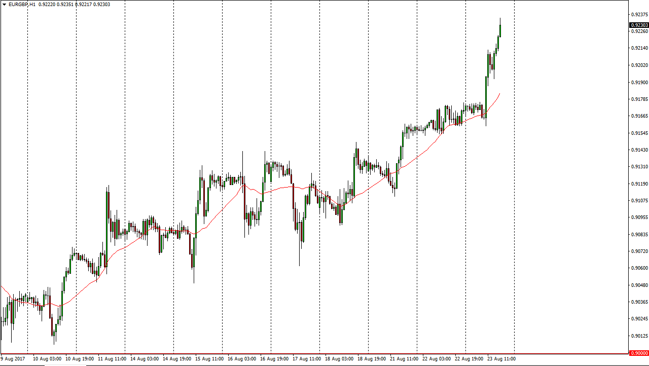 The EUR/GBP pair went sideways initially during the day on Wednesday, but then shot towards the upside as we finally broke above the 0.92 level. This is a
