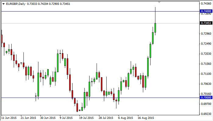 The EUR/GBP pair initially rocketed higher during the course of the session on Monday, as the Euro got quite a bit. However, the 0.74 level offered enough