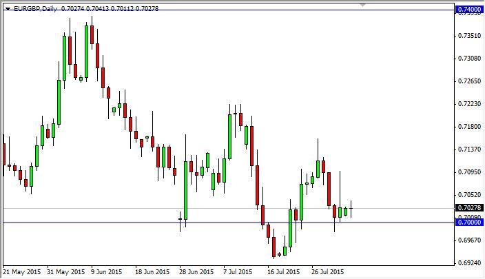 The EUR/GBP pair went back and forth during the course of the day on Monday, bouncing off of the 0.70 level. However, the market essentially went nowhere