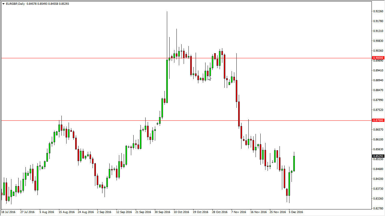The EUR/GBP pair rallied during the day on Wednesday, but still has quite a bit of resistance above to continue going higher. The 0.87 level above is
