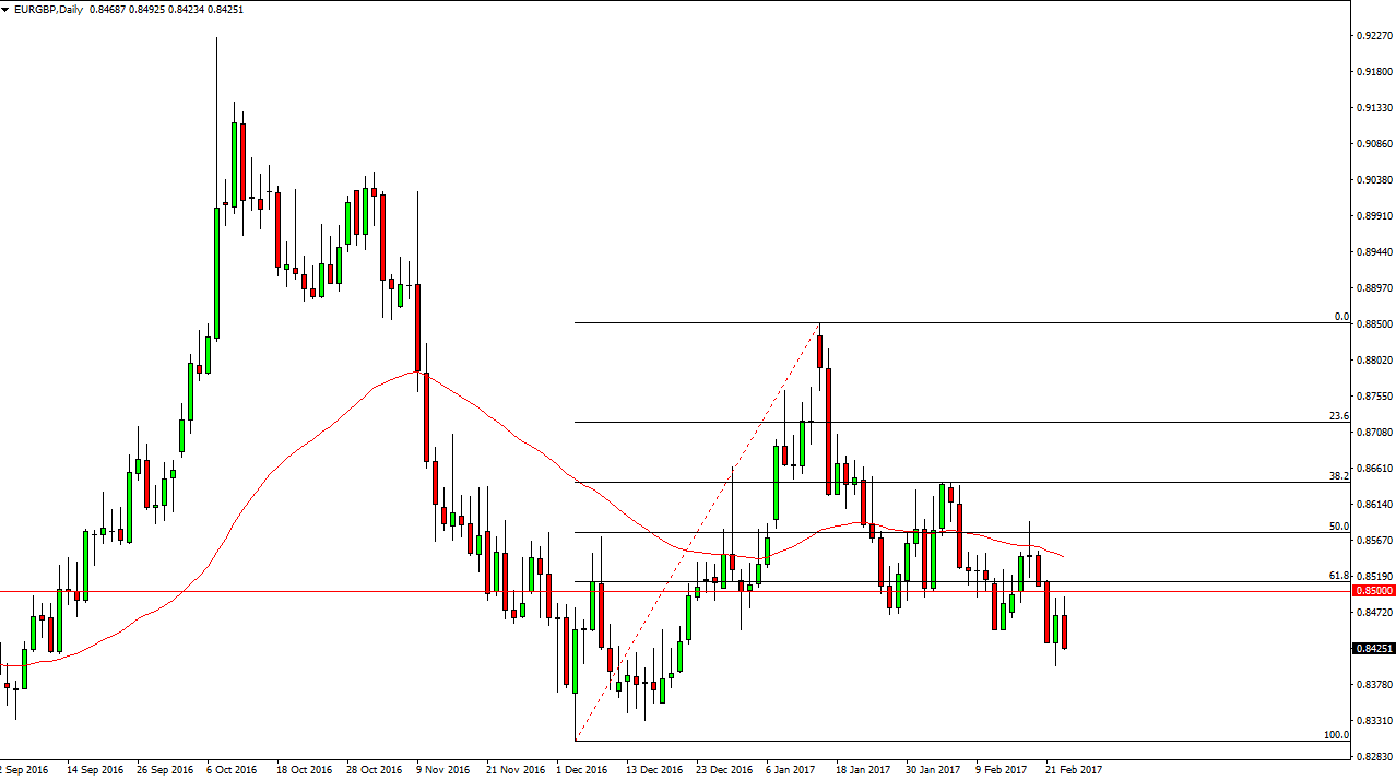 The EUR/GBP pair initially tried to rally during the day on Thursday, testing the 0.85 level. That’s an area that has a lot of interest in it, so I think