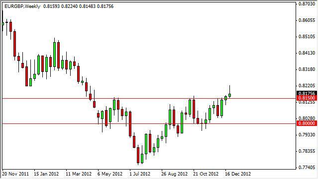 The EUR/GBP pair initially surged during the week as we attempted to break above the 0.82 handle. However, by the close of business on Friday we had
