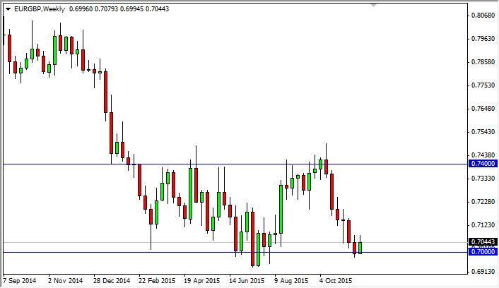 The EUR/GBP pair bounced off of the 0.70 level during the course of the week, showing that we are at least seeing a reaction to the psychological nature