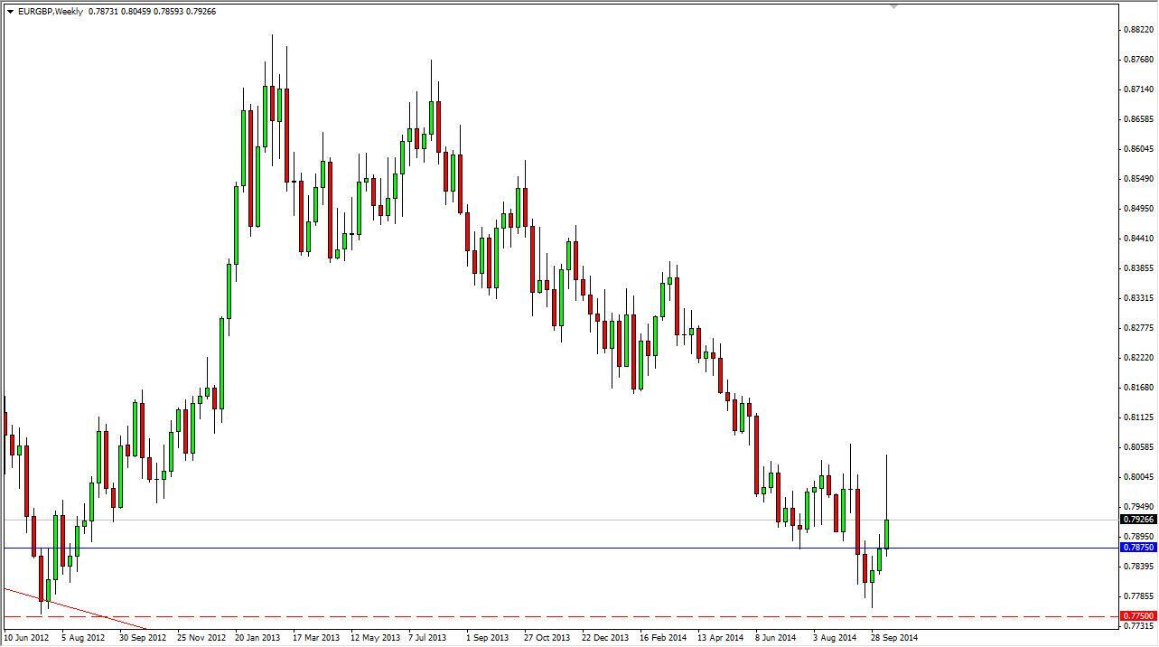 The EUR/GBP pair broke to the upside during the course of the week, but found the 0.8050 level to be far too resistive to hang onto the gains. Ultimately,