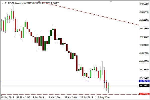 The EUR/GBP pair went back and forth during the course of the week, gaining slightly by the time the markets closed. The 0.7875 level above is resistance though, so we need to get above there in order to start buying and head to the 0.80 level. On the other hand, if we break down below the 0.7750 level, this market could fall the way down to the 0.75 handle. The meantime though, it’s not really a market conducive to placing long-term trades at the moment, so therefore we have no interest in risking any money.