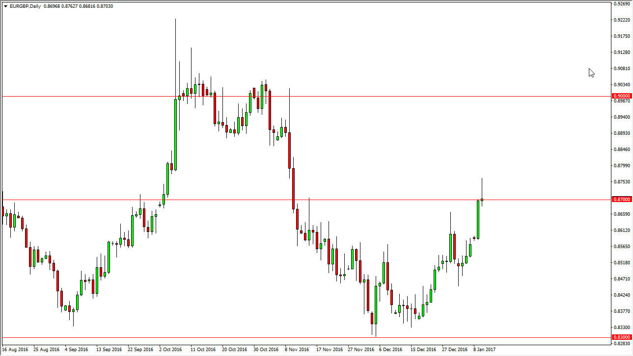 The EUR/GBP pair broke out above the 0.87 level during the day on Tuesday, but found a massive amount of resistance above that level. By forming a very