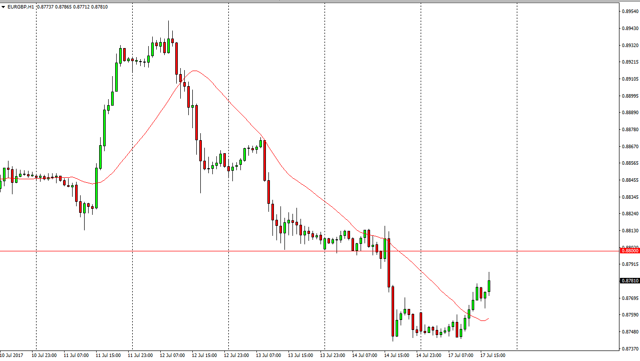 The EUR/GBP pair went sideways initially during the day on Monday, but then rallied towards the 0.8775 handle. I think the market is going to try to get