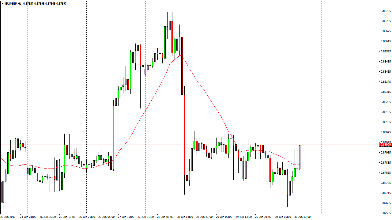 The EUR/GBP pair fell initially during the day on Friday but found support at the 0.8750 level. We are currently crashing into the 0.88 handle, and a