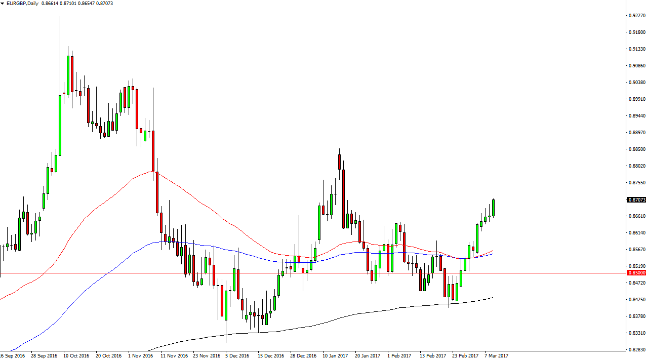 The EUR/GBP pair broke higher during the day on Thursday, clearing the top of 3 shooting stars. That’s an extraordinarily bullish sign, and it appears