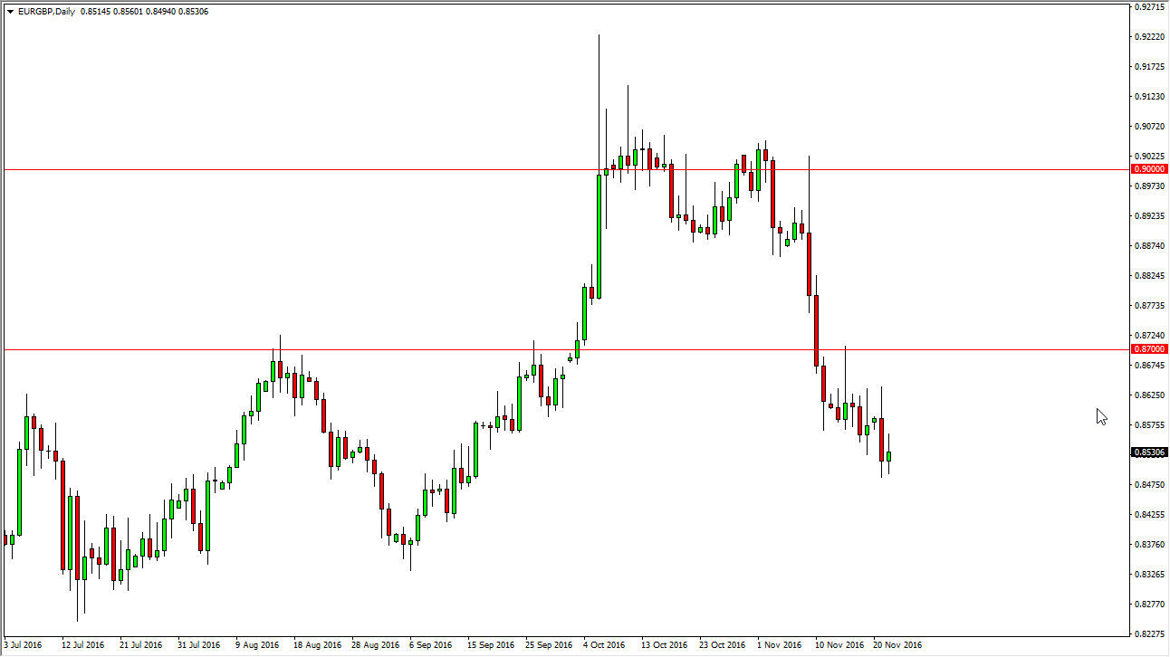 The EUR/GBP pair had a volatile session on Tuesday as we continue to grind lower. At this point, it’s likely that we will continue to go lower but it’s also just as likely that it will be very bumpy along the way. Because of this, it’s difficult to imagine getting involved in this market. Longer-term moves may be possible, but there will be easier ways to trade both the Euro and the Pound in the Forex world. I prefer trading both currencies against the US dollar, but recognize that if we can break above the 0.87 level, that would be a clear-cut “buy signal” in this market. Currently, it seems as if the market is trying to grind towards the 0.8350 handle.