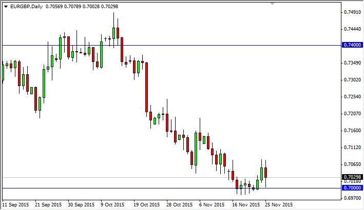 The EUR/GBP pair fell during the course of the day on Wednesday, testing the 0.70 level for support. However, we not only found it there but we did bounce a bit towards the end of the day. With today being Thanksgiving Day in the United States, it’s very unlikely that this market will have a whole lot of volume once we get past the European trading session, so we believe that a short-term bounce could be possible off of the 0.70 level. We have noticed whatsoever in selling, at least not until we break down below the 0.69 level.