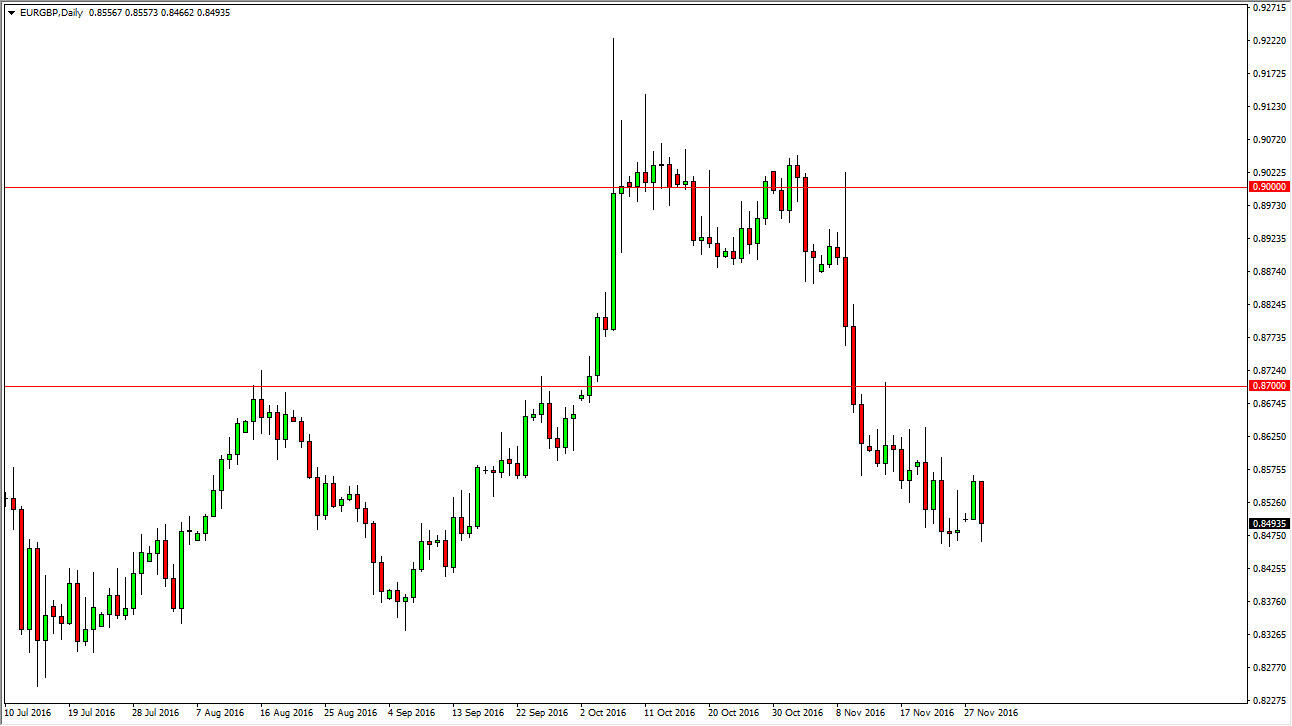 The EUR/GBP pair fell at the beginning of the session and tested the 0.85 level for support. The market has quite a bit of support just underneath at the 0.8450 level below, and as a result every time we rally I suspect that the sellers will get involved. If we break down below this level, I think then we start to target the 0.8350 level. The 0.87 level above is massive resistance, and as a result I think it’s not until we break above there until we start going long. Until then, selling exhaustion as the only way to go.