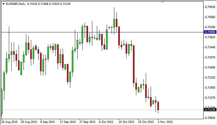 The EUR/GBP pair fell during the course of the session on Tuesday, testing the 0.71 handle. This is a market that looks like it is going to in fact grind