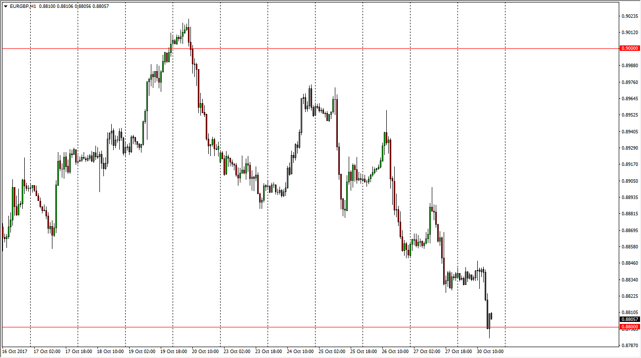 The EUR/GBP pair went sideways initially during the trading session on Monday, testing the 0.88 level underneath. I believe that the area continues to be