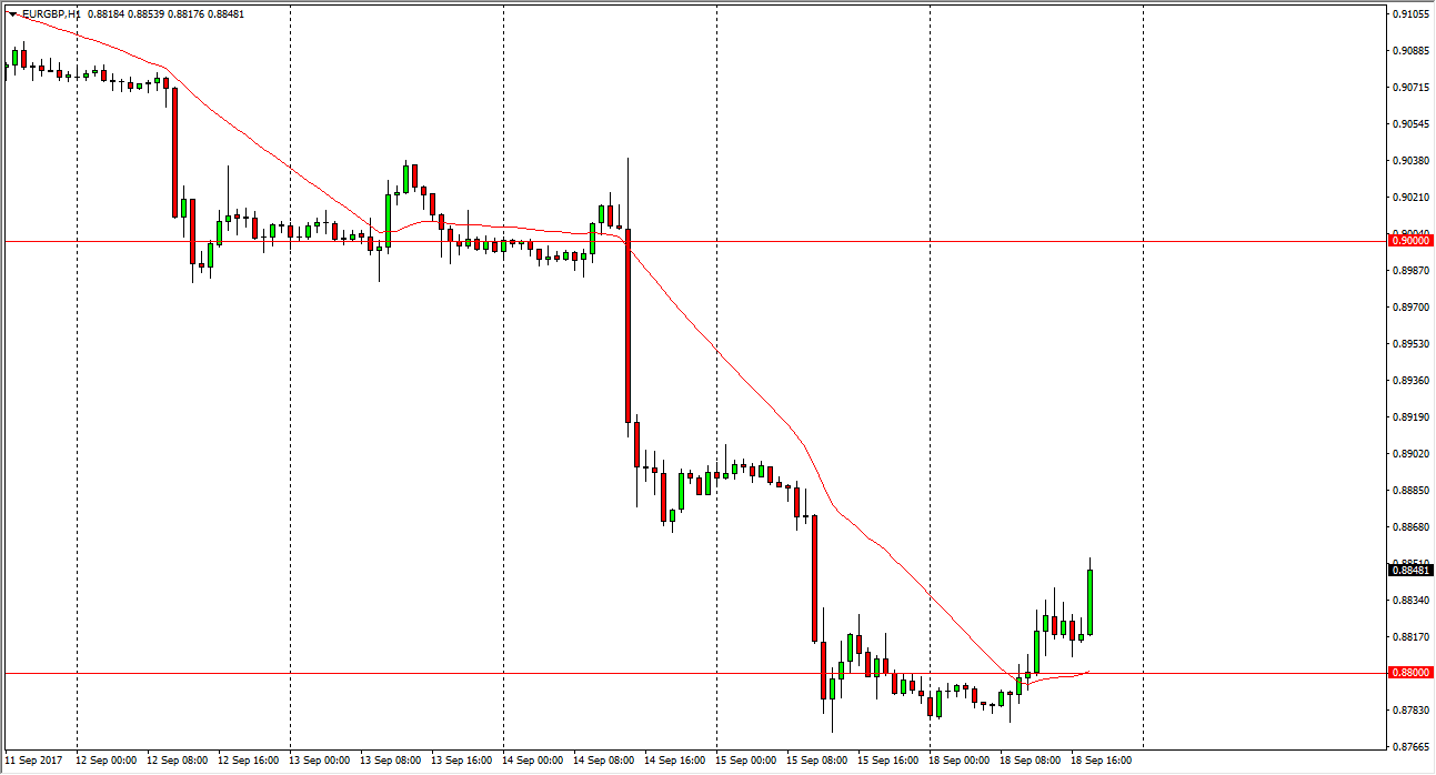 The EUR/GBP pair rallied a bit during the day on Monday, using the 0.88 level as support. This is a massive support level on the longer-term charts, and I