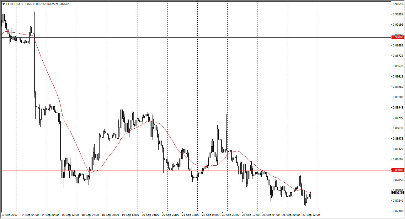 The EUR/GBP pair initially tried to rally during the day on Wednesday, but found the 0.88 level to be far too resistive. That’s an area where we have seen
