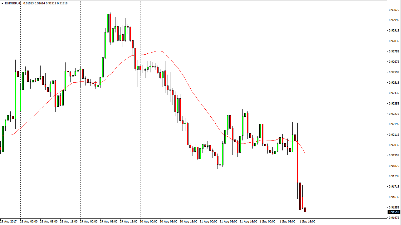 The EUR/GBP pair initially went sideways, but then broke down below the 0.92 level during the Friday trading session. We are now approaching the 0.9150