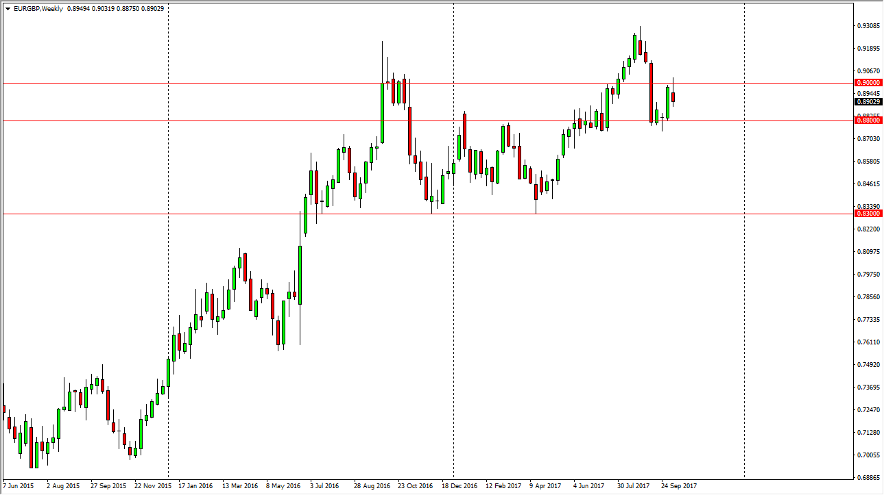 The EUR/GBP pair initially rally during the week, breaking above the 0.90 level. However, we rolled over to form a bit of a shooting star, and that is a