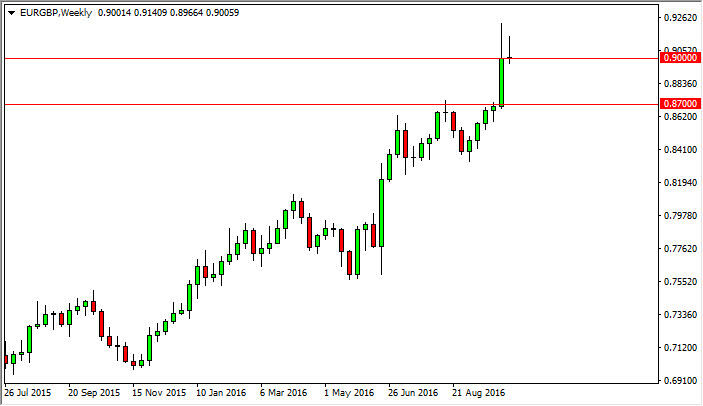 The EUR/GBP pair initially tried to rally during the course of the week, but found the area above the 0.90 level to be far too resistive. With this being