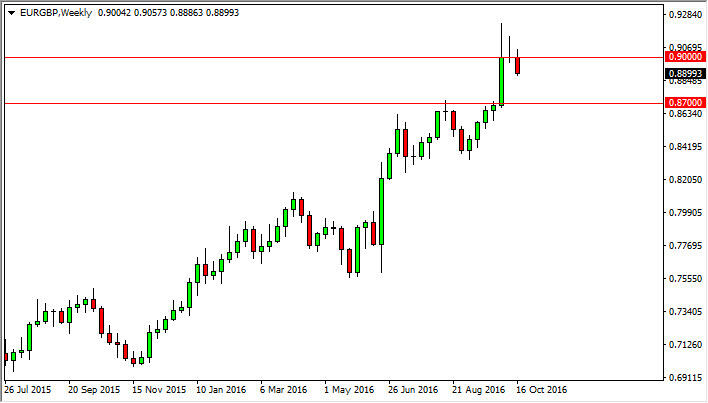 The EUR/GBP pair initially tried to rally during the course of the week but turned back around as the 0.90 level above has been so resistive. With this