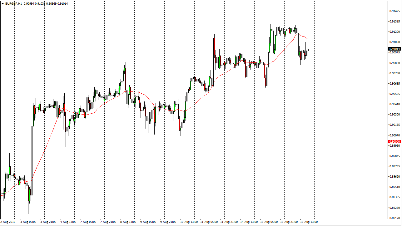 The EUR/GBP pair initially went sideways during the day on Wednesday, but then fell to reach down towards the 0.91 handle. This is an area where we had