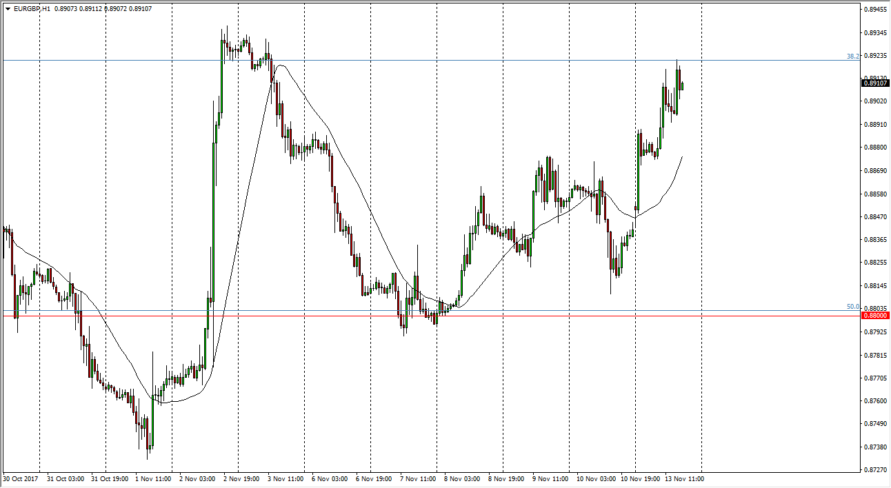 The EUR/GBP pair gapped higher at the open on Monday, and then shot towards the 0.8925 level, an area that has been resistive in the recent past. We are starting to roll over from there, and at this point I think this means that we are going to go looking for value underneath. The British pound of course has its own issues, especially with Teresa May dealing with a bit of an uprising from some of her MPs underneath, and some type of no-confidence situation could hurt the British pound as we are starting to worry about negotiations between the United Kingdom and the European Union, and any lack of unity in the UK. In general, this is a market that continues to be choppy, but the 0.88 level underneath holding as support was very important. It is because of this that I am looking for a bounce to take advantage of as we will be trying to build up enough momentum to continue the up move.