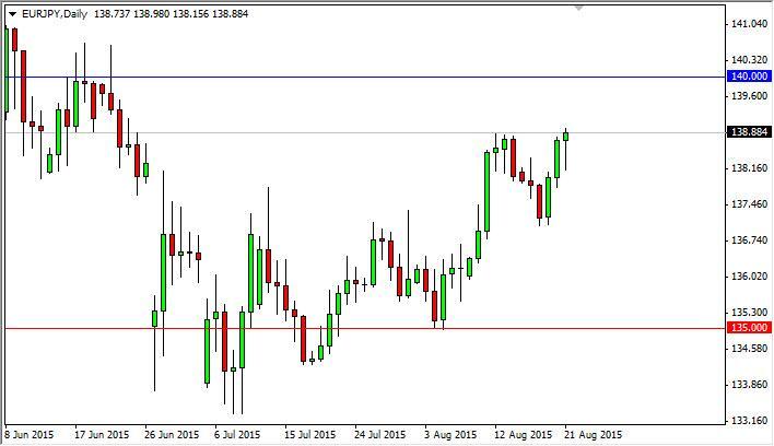 The EUR/JPY pair initially fell during the course of the day on Friday, but then turned back around at the 138 level to form a hammer. The hammer of course is bullish, so we can break above the top of it, we believe this market will then reach towards the 140 handle. The 140 handle is very resistive though, so we do not anticipate this market breaking out of it right away. In fact, we believe that is just simply a short-term buying opportunity in what has been a rather volatile market.