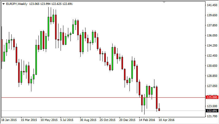 The EUR/JPY pair initially tried to rally during the course of the week but turned right back around to form a shooting star. The shooting star suggesting that the downward pressure will continue, perhaps breaking down to the 120 level. However, there isn’t much in the way of room, so we prefer to short this market off of lower timeframe such as the daily chart, or even perhaps the 4-hour chart. We have no interest in buying this market at the moment as it seems to be very bearish.