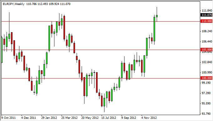 The EUR/JPY pair shot higher during the week but met serious resistance at the 112 handle. The pullback that we saw after that move resulted in a shooting