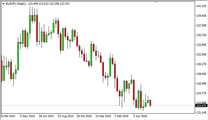 The EUR/JPY pair fell during the course of the week, testing the 122 region. There is quite a bit of support below though, so we need to make a fresh, new low in order to start selling from a longer-term perspective. A pullback from here could very well have quite a bit of resistance appear, so this we rally and get an exhaustive candle, we would be more than willing to sell their as well. It will more than likely be a shorter-term type of trading environment though, so weekly chart may not be that particular useful.
