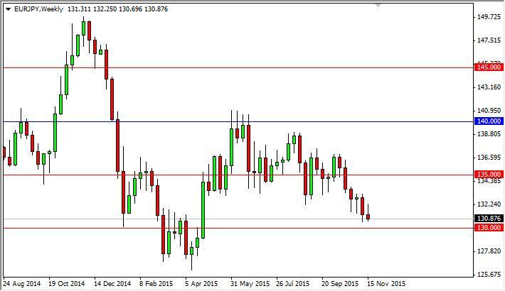 The EUR/JPY pair initially tried to rally during the course of the week, but found enough resistance of the 133 level to turn things back around and start falling again. We did up forming a shooting star, at the bottom of the down move. With this, we are now pressing the 130 level for support, and we believe that a break down below there is in fact the reason to start selling. We have no interest in buying, this market looks far too exhausted at the moment to continue any type of uptrend.