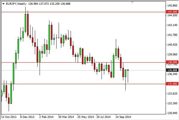 The EUR/JPY pair fell during the course of the week, but found enough support near the 135 level to turn things back around and form a nice-looking