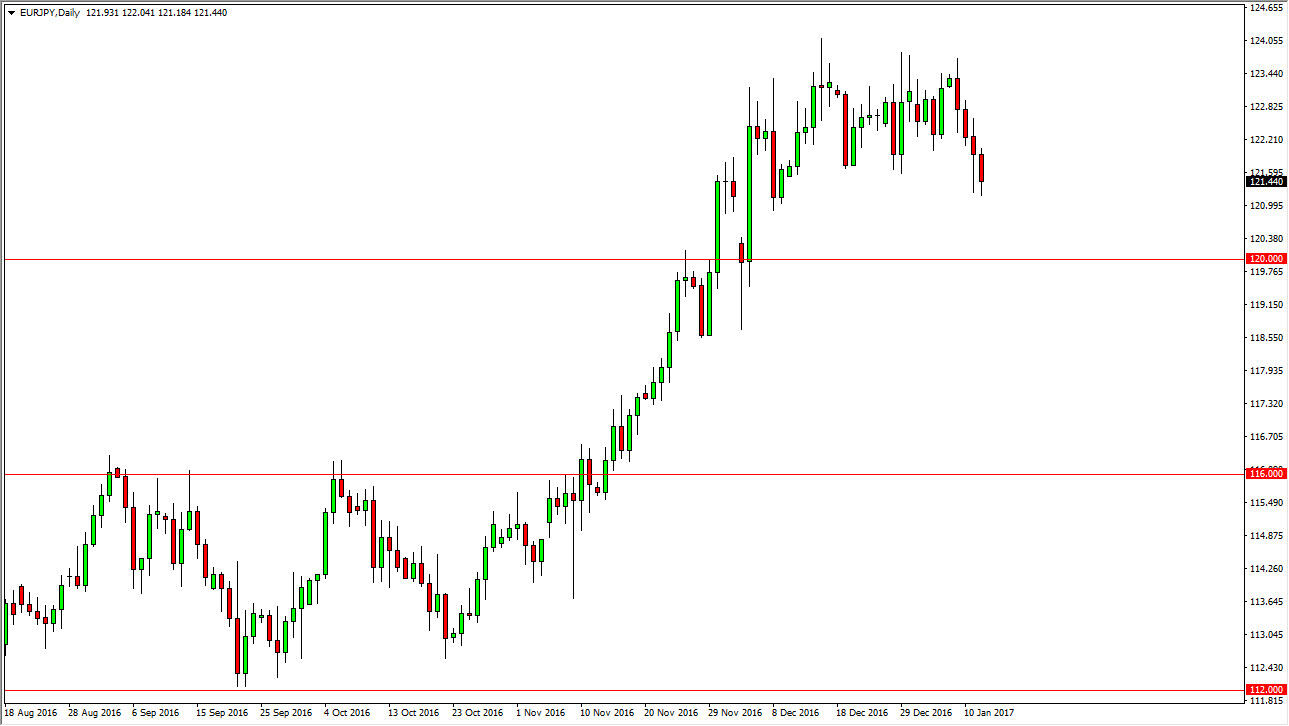 The Euro fell against the Japanese yen initially on Thursday, reaching towards the 121 handle. However, we have been in a longer-term uptrend for some time, and even though we have broken down a bit I recognize that the real support probably sits closer to the 120 handle below. With this type of action, I think the market is trying to build up enough momentum to go higher, and continue the longer-term uptrend. This is a market that continues to show quite a bit of volatility, as the Japanese yen typically does, but quite frankly I do think that the Bank of Japan and its ultra-easy monetary policy will continue to work against the value of the Yen anyway, and that is what this pair is following.