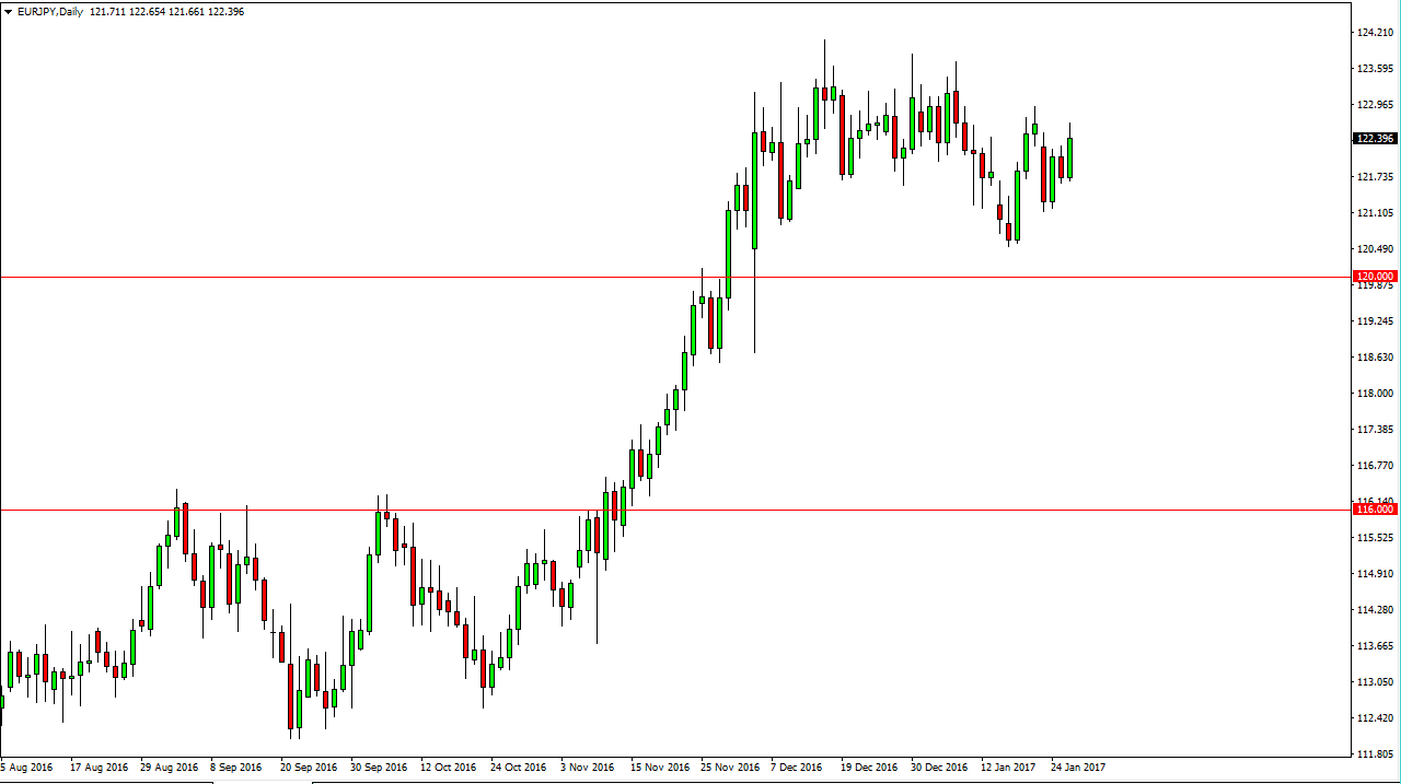 The EUR/JPY pair rally during the day on Thursday, showing signs of life. I still think there is a significant amount of noise above, so pullbacks will more than likely be buying opportunities more than anything else. I don’t think that selling is going to be easy to do at the moment, and I believe that there is a “floor” at the 120-handle underneath. Ultimately, I believe that the Japanese yen continues to sell off, and that the pair should follow the rest of the young related pairs to the upside going forward.