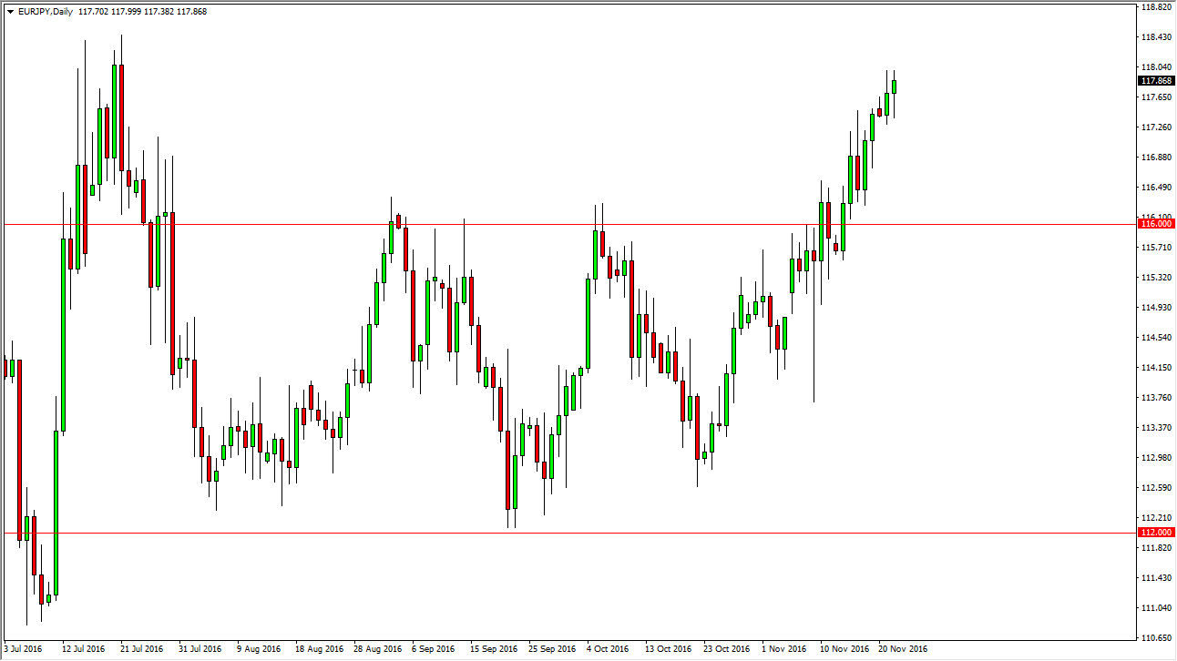 The EUR/JPY pair fell initially on Tuesday but turned around to form a hammer. The Japanese yen continues to sell off against most currencies around the world, and this of course is going to transfer over into this market. Although I don’t like the Euro, the Japanese yen is even softer so it makes sense that we would continue to go higher over the longer term. At this point, I think the market is a little overbought so we are due for a pullback. That pullback should eventually offer a supportive candle, signaling value.
