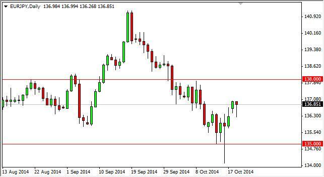 The EUR/JPY pair fell during the course of the day on Monday, but bounced enough to form a nice-looking hammer. Ultimately, we feel that this market continues to go higher and heads towards the 138 level. That is a level that has been massively resistive in the past, and as a result we feel that the market will be attracted to it. That being the case, if we can get above the 138 level, we feel that the market should then head to the 140 level. On the other hand, if we fall from here we believe that pullbacks will be nice buying opportunities as there is plenty of support just below as well.