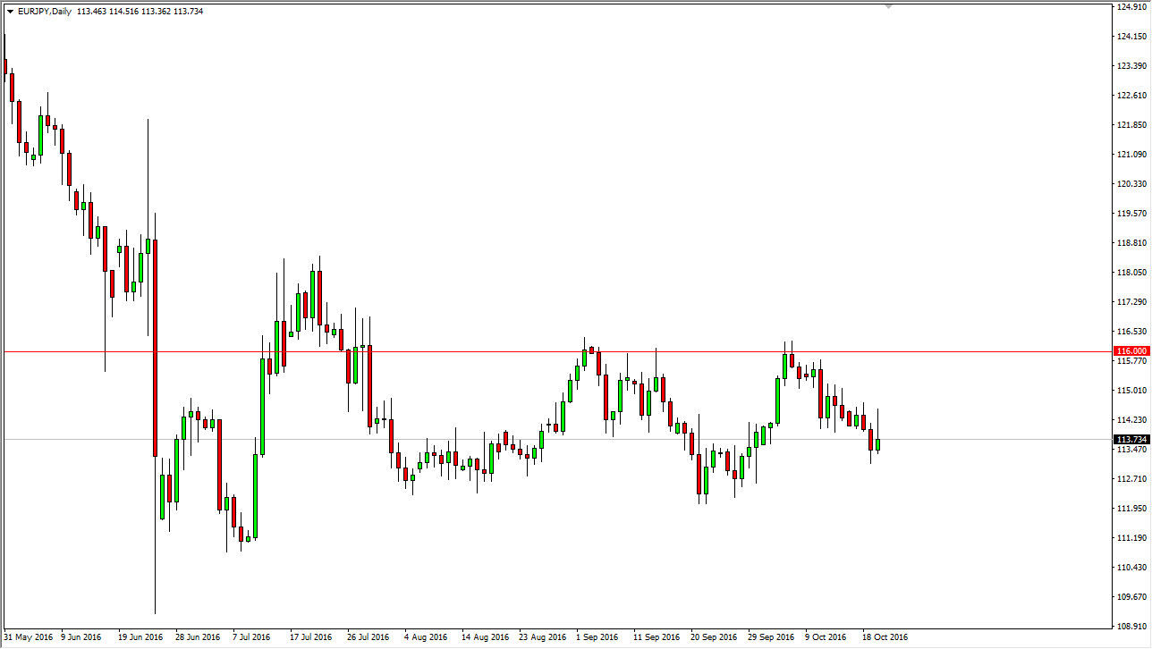 The EUR/JPY pair initially tried to rally during the course of the session on Thursday, but turned back around and form a bit of a shooting star. The shooting star of course is very likely a sign that we are going to continue to see bearish pressure. The 112 level below is massively supportive though, so a bounce as far as I would take a selling position at this point in time. If we rally, I think that given enough time we will see an exhaustive candle that we can search selling as well.