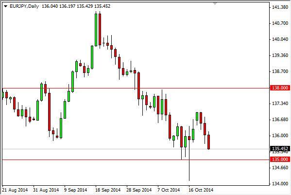 The EUR/JPY pair fell significantly during the session here on Wednesday, but remains above the all-important 135 support level. Because of this, it