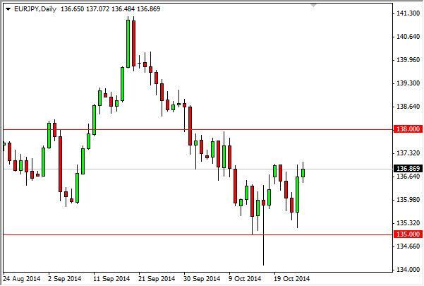 The EUR/JPY pair went higher during the session on Friday, testing the 137 level. The market as you can see could go higher though, and the 138 level