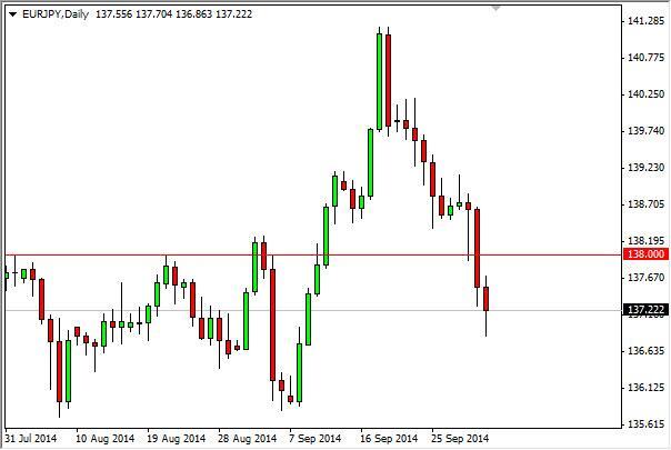 The EUR/JPY pair fell during the course of the day on Thursday, but as you can see found enough support at the 137 region to turn things back around and