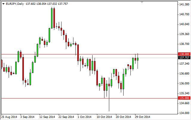 The EUR/JPY pair went back and forth during the course of the day on Thursday, testing the 138 level. If we can get above the 138 level on a daily break,