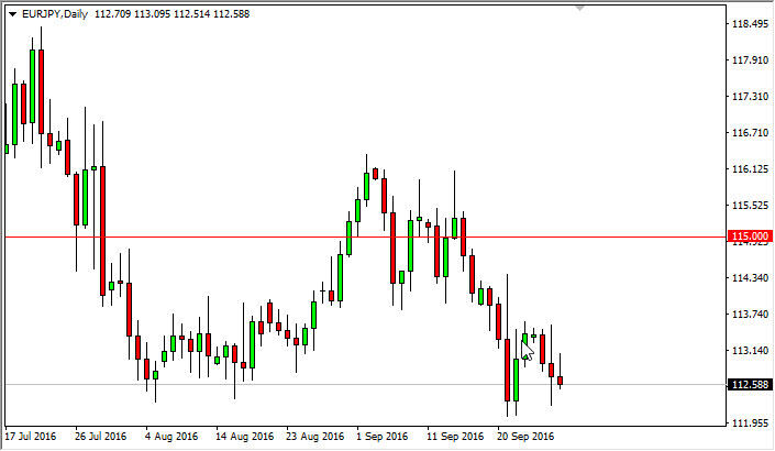 The EUR/JPY pair initially tried to rally during the day on Wednesday, but turned right back around to form a shooting star. The shooting star is near the bottom of the overall trading range that we have been in, so having said that I feel that a break down below the 112 level would send this market much lower, perhaps down to the 110 level. I believe that rallies should be sold on signs of exhaustion as we are most certainly in a longer-term negative move, and therefore I have no interest in buying this market.