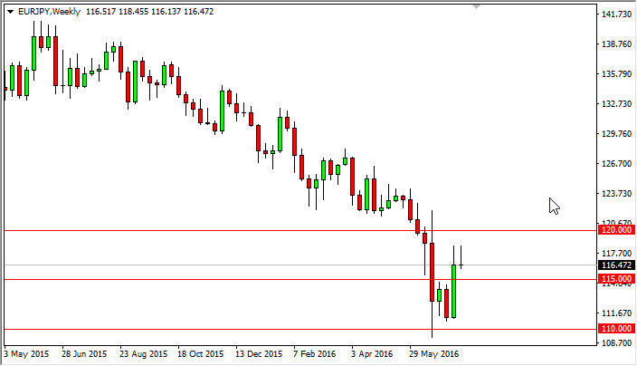 The EUR/JPY pair rose during the course of the week, but they turned back around to form a shooting star. The shooting star of course is a negative sign,
