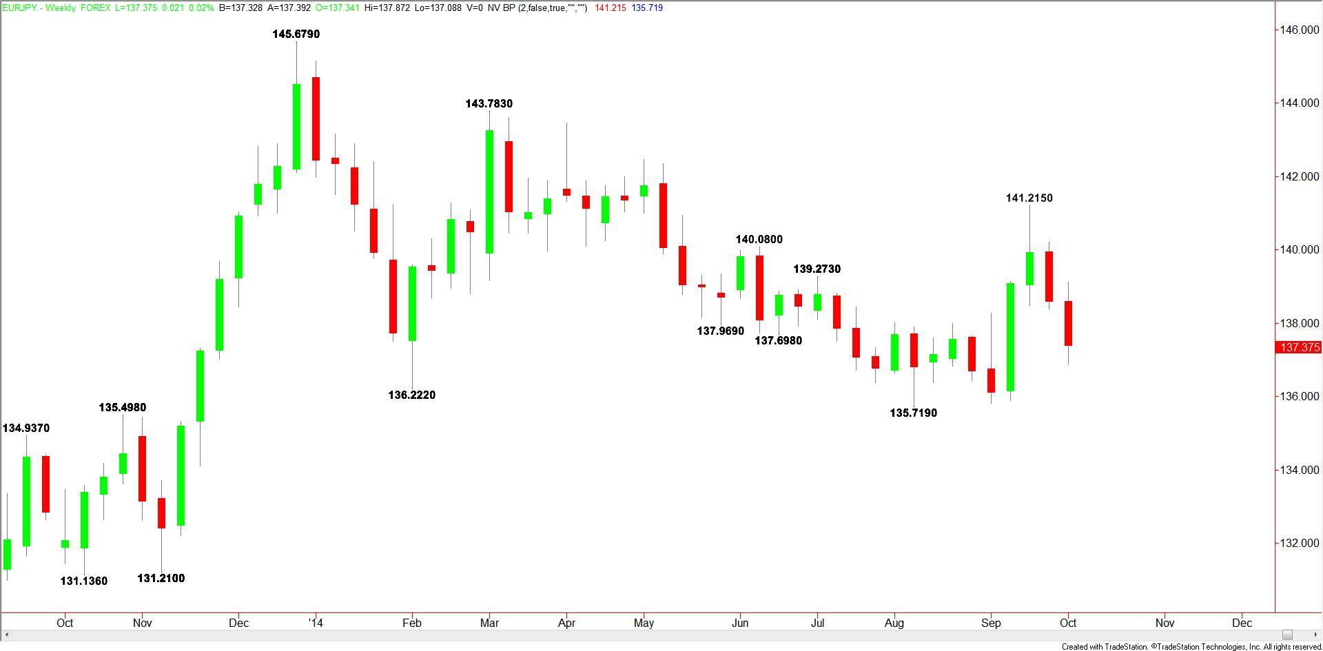 The EUR/JPY finished lower for a second straight week, putting the market in a position to challenge a key support level next week at 135.808.