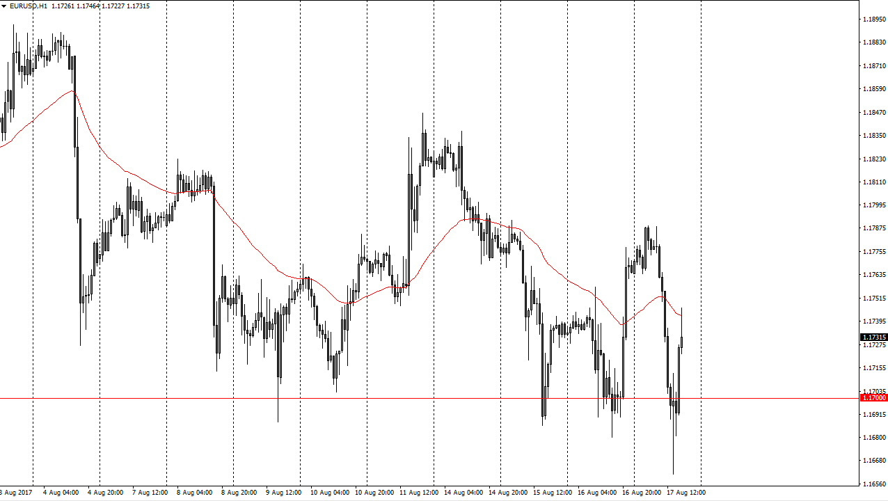 The EUR/USD pair has fallen significantly during the trading session on Thursday, but as the Americans came back we bounced above the 1.17 level again. I