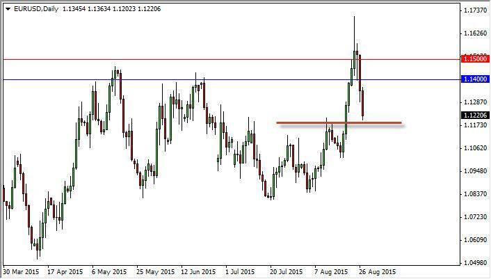 The EUR/USD fell hard during the course of the session on Thursday, testing the 1.12 level. That being the case, the market is now testing support yet