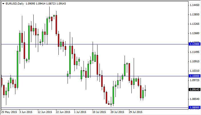 The EUR/USD pair fell during the course of the session on Thursday, but turned back around and form a hammer. Because of this, it appears that the market is trying to reach towards the 1.10 level yet again, but with the Nonfarm Payroll Numbers coming out today, the one thing you can count on his volatility. Because of this, we are actually going to step on the sidelines and wait to see if there’s some type of knee-jerk reaction that we can work against as we believe the consolidation overall will continue. We believe that the 1.08 level below will continue to be supportive, while the 1.11 level above should be resistive.