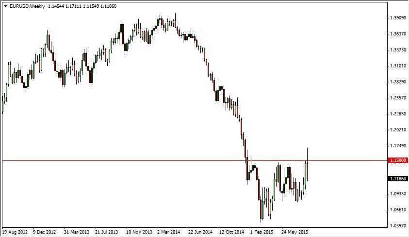 The EUR/USD pair initially broke out during the course of the week, clearing the 1.15 barrier. This is an area that has been massively resistive in the