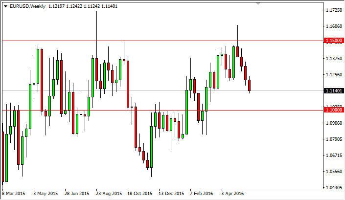 The EUR/USD pair fell slightly during the course of the week, as we continue to grind lower. At this point in time, we think that the market could very