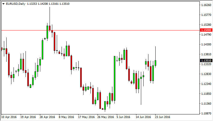 The EUR/USD pair initially broke higher during the course of the day on Thursday as rumors have sent quite a bit of speculation into this market due to the fact that they are essentially saying that the United Kingdom will more than likely stay within the European Union. Ultimately, this is a candle that suggests that the sellers have returned though, as we pullback rather rapidly and formed a bit of a shooting star. This point in time, expect quite a bit of volatility and once we get the announcement we will more than likely make a more significant move, with the Euro gaining if good news comes out of the United Kingdom as far as the “remain” vote is concerned.